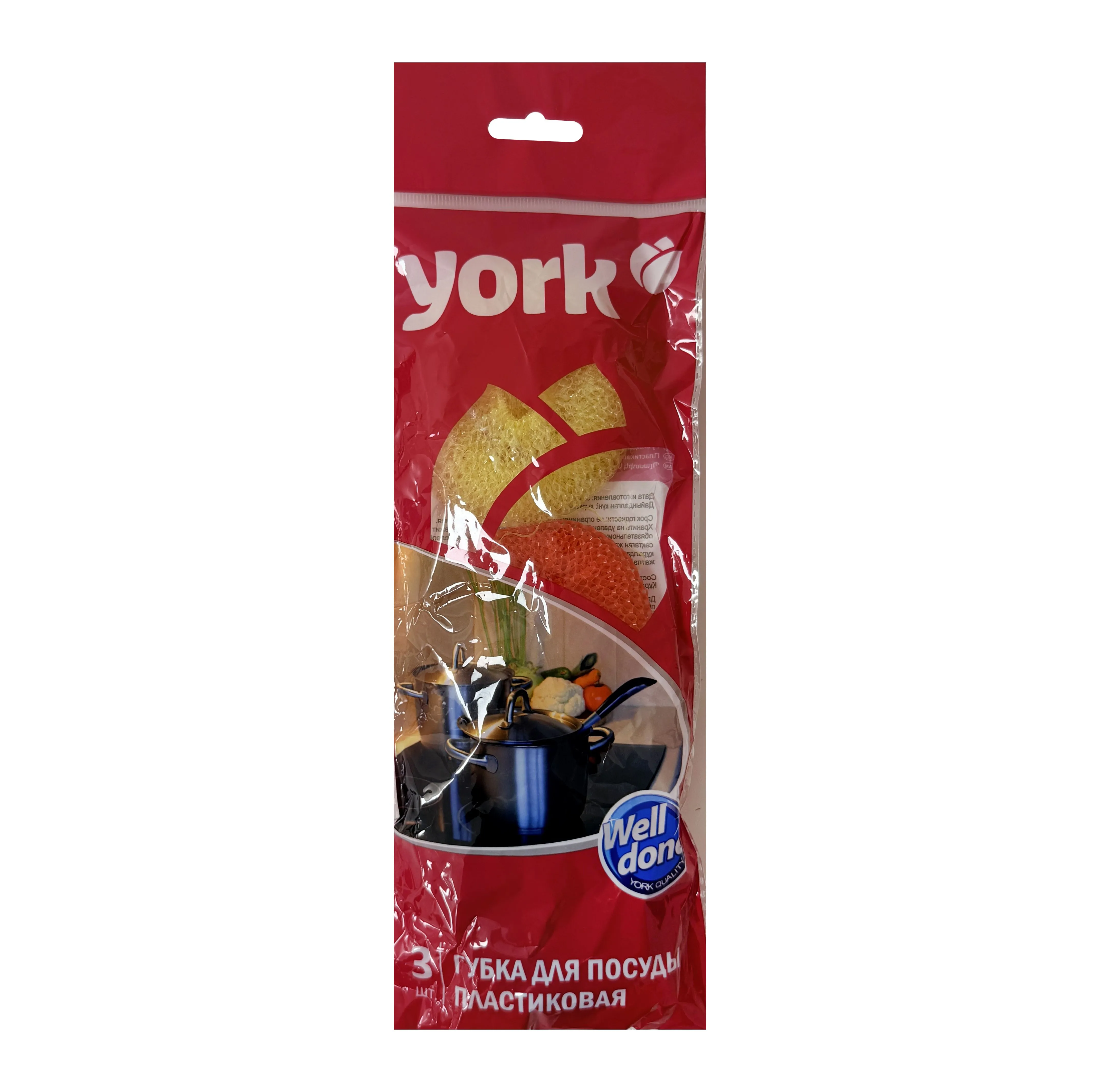 —губка д/посуды сетчатые пластиковые York /3 шт *