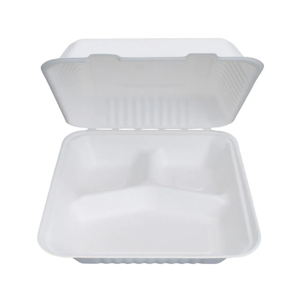 Одноразовый бургербокс из сахарного тростника. Экопосуда для упаковки и доставки фаст-фуда и готовых блюд.