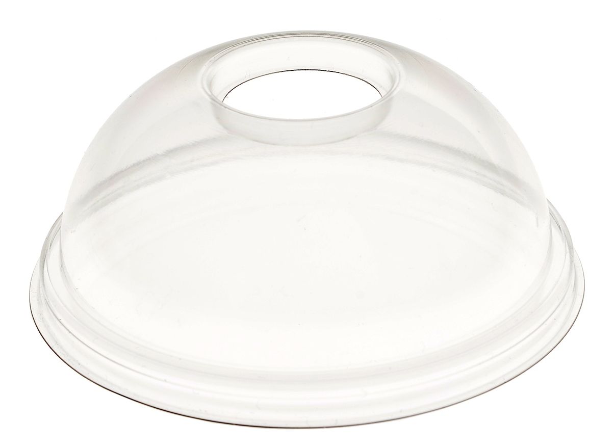 Пластиковая купольная крышка для стакана с отверстием. Прочно закрывается не допуская проливания содержимого.