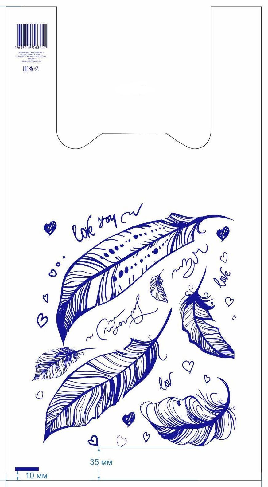 Пакеты-майки размером 27×50 см «Перья» — практичное и эстетичное решение для упаковки товаров в розничной торговле, на кассе и в повседневном использовании.