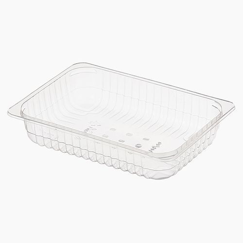 Используется как под запайку, так и под крышку  для фасовки мясных и рыбных полуфабрикатов, готовых блюд, салатов, деликатесов. Можно разогревать в СВЧ-печи.Размер 210х148х47 мм