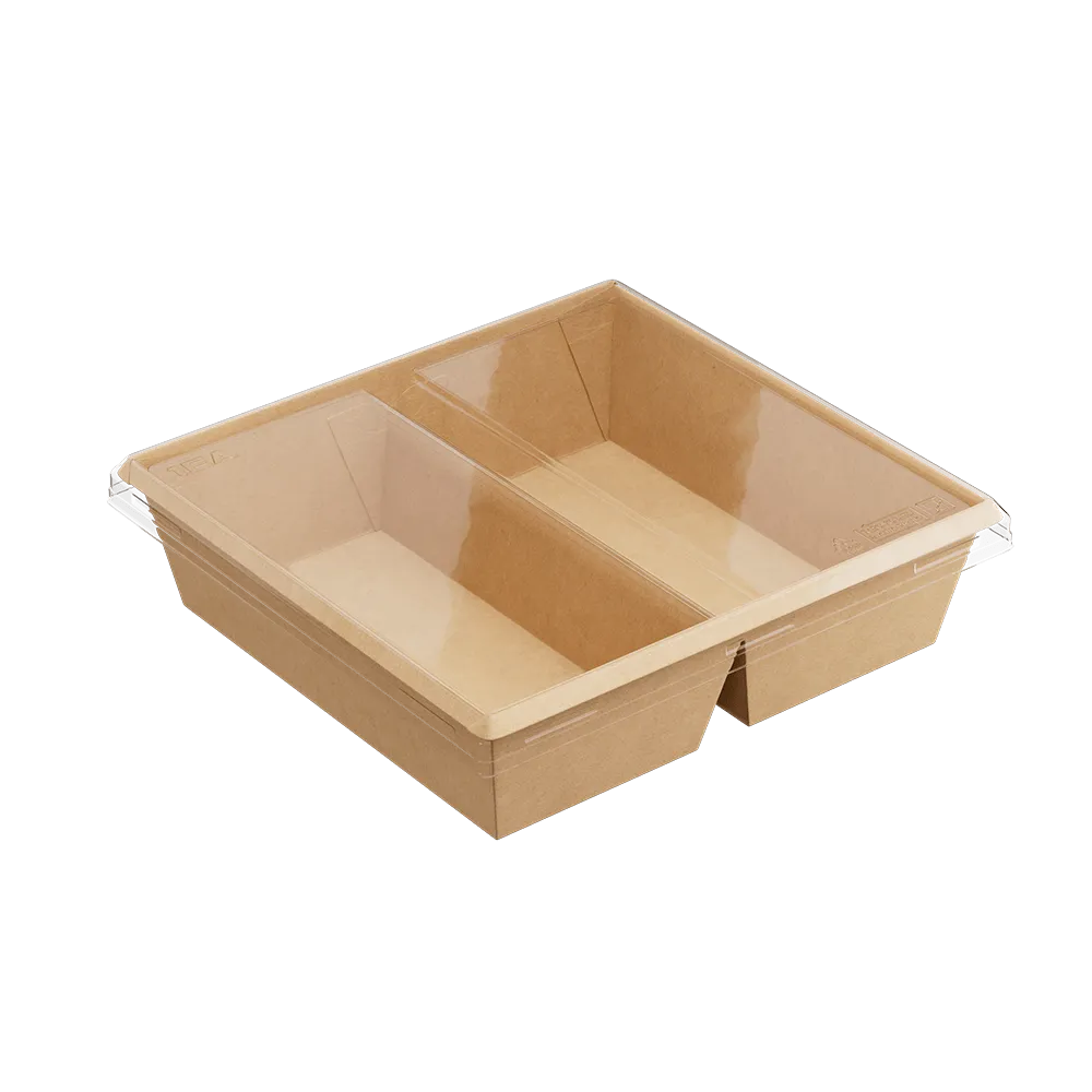 Изготовлен из прочного экологичного картона, имеет сформированный жёсткий борт (не требует сборки), крышка защёлкивается в один клик без протеканий, устойчив к конденсату, обладает высокой барьерностью (не прожиривается), подходит для разогрева в СВЧ без крышки, произведен без клея и подлежит 100% переработке.