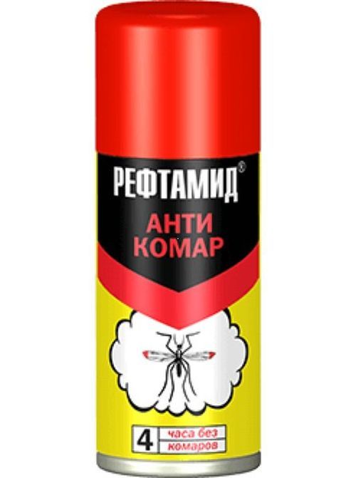 Аэрозоль Reftamid «Антикомар» обеспечит вам надёжную защиту от кровососущих насекомых. Содержит высокоэффективный действующий компонент, сохраняет своё действие в течение 4 часов.