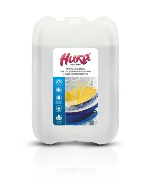 Ополаскиватель для ПММ «Ника-ОПМ» 5 кг — кислотный концентрат для финального ополаскивания посуды в посудомоечных машинах и пароконвектоматах.