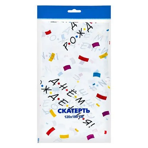 Изготовлена из полиэтилена высокого давления (ПВД). Покрытие скатерти позволяет легко удалить загрязнения с ее поверхности при помощи влажной салфетки.