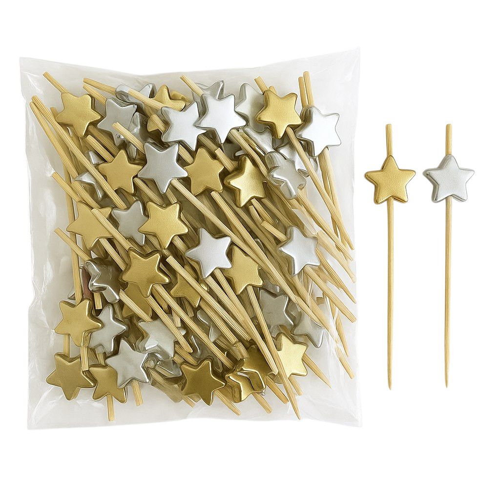 пика бамбук Звезда (золото/серебро) 7 см/100