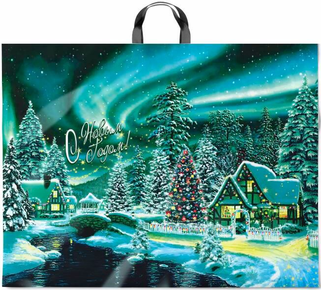 Пакет с прочной петлевой ручкой новогодней символики изготовлен из полиэтилена высокого давления. Пакет имеет гладкую глянцевую поверхность. Подходит для любых сфер использования (парфюмерия, бижутерия и другое), в том числе как подарочный пакет.
