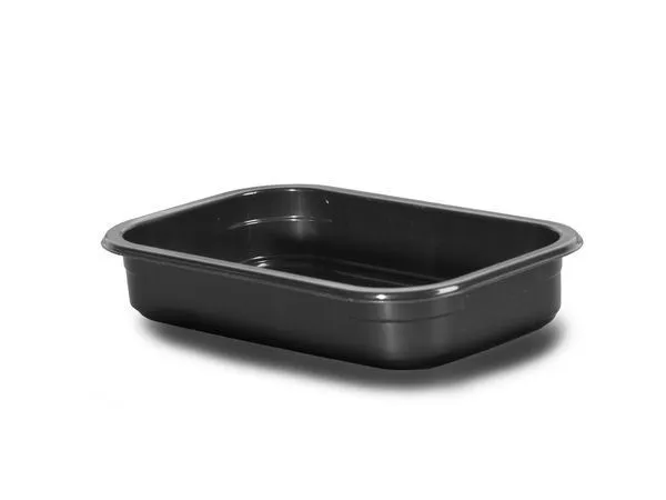 Используется как под запайку, так и под крышку для фасовки мясных и рыбных полуфабрикатов, готовых блюд, салатов, деликатесов. Можно разогревать в СВЧ-печи.Размер 210х148х35 мм
